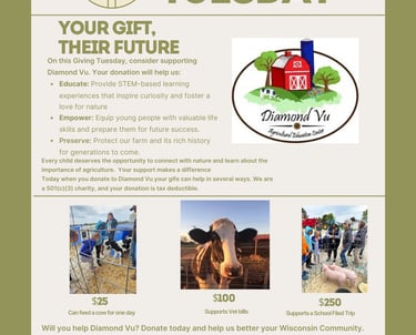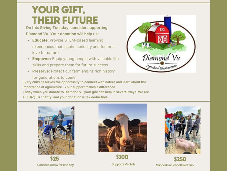 Since opening in 2019, Diamond Vu Agricultural Education Center has welcomed thousands of visitors to our working family farm, turning everyday chores into hands‑on lessons that educate, empower, and preserve a love for agriculture in our community.